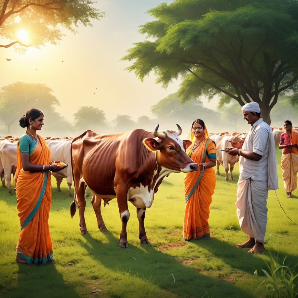 Tale: In the heart of India, Madhya Pradesh has a long-standing tradition of Gau Seva, or the service to cows. In this region, cows are considered sacred beings that must be protected and cared for. Gau Shalas, or cow shelters, are established to provide sanctuary for these revered animals. The people of Madhya Pradesh believe that serving cows brings spiritual merit and prosperity.
