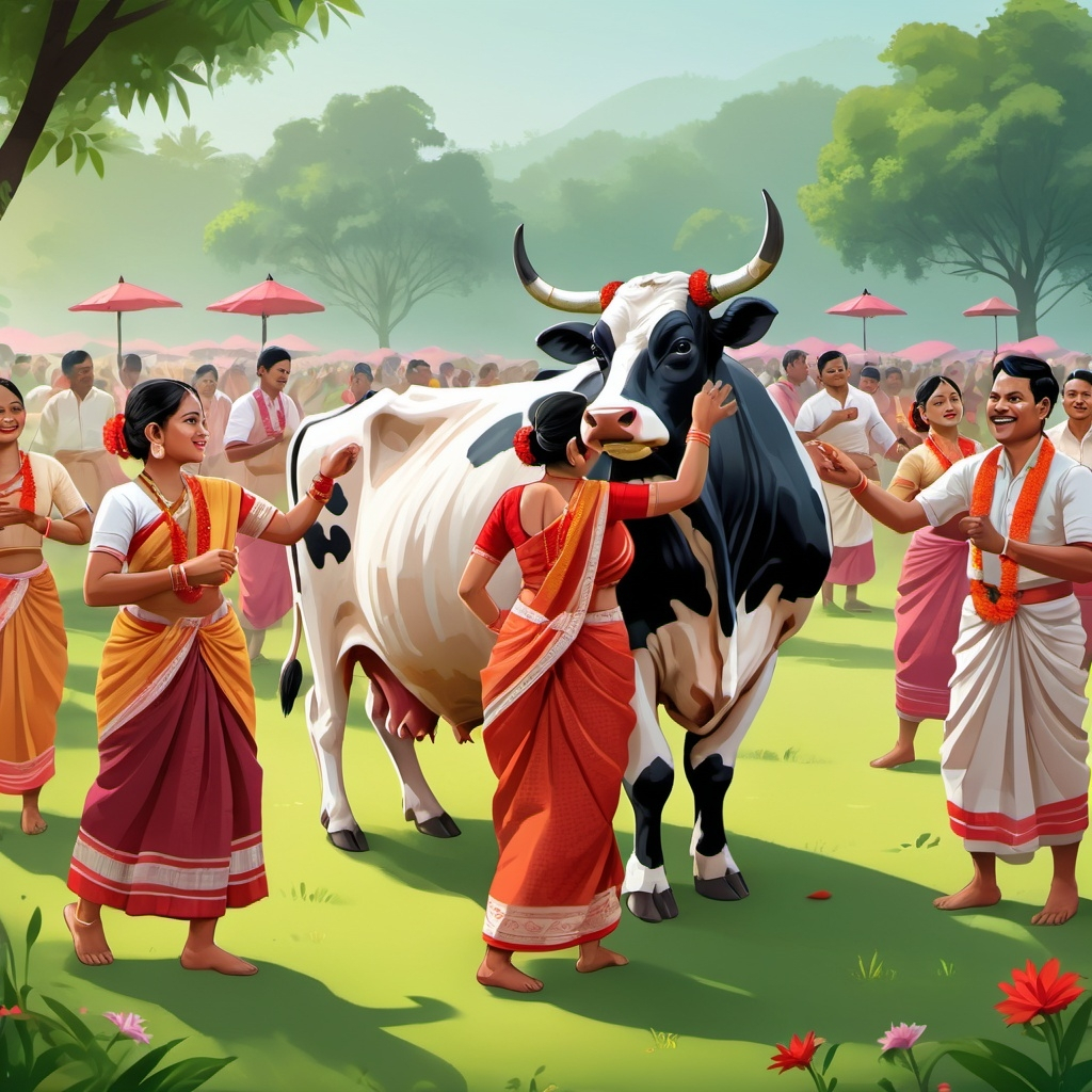 The cow, as a symbol of prosperity and fertility, is honored with rituals that emphasize its importance in Assamese culture. The festival reflects the deep respect for cows as providers and protectors of the land.