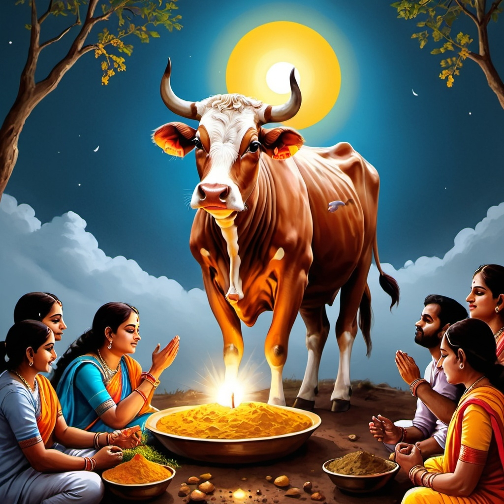 Govardhan Puja, celebrated across northern India, commemorates this divine intervention. On this day, cows are honored as they were the ones who inspired Krishna to lift the hill, protecting the community. Villagers create small replicas of Govardhan Hill using cow dung, highlighting the cow’s role in sustaining life.