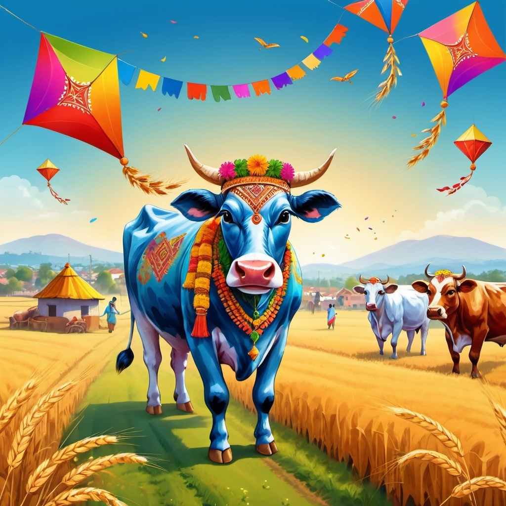 Tale: As the sun transitions into Capricorn, marking the arrival of the harvest season, the people of Gujarat and Maharashtra come together to celebrate Makar Sankranti. The day is dedicated to honoring the cow, the steadfast companion of farmers throughout the year. Cows are bathed, their horns painted, and they are adorned with vibrant cloths and garlands, symbolizing their integral role in bringing prosperity.