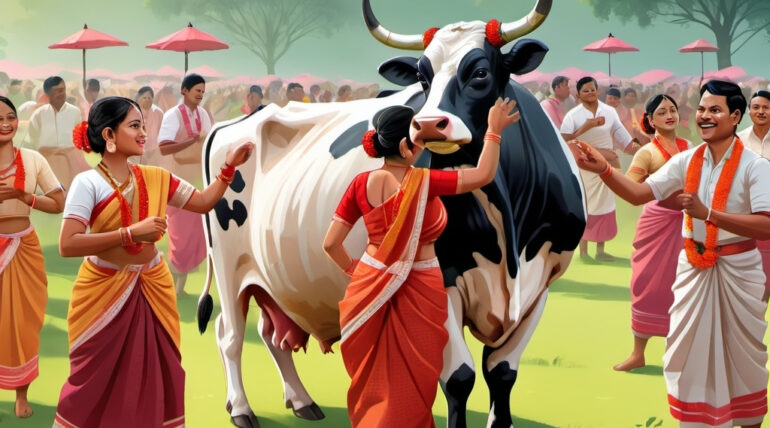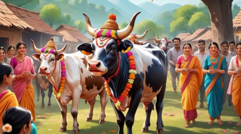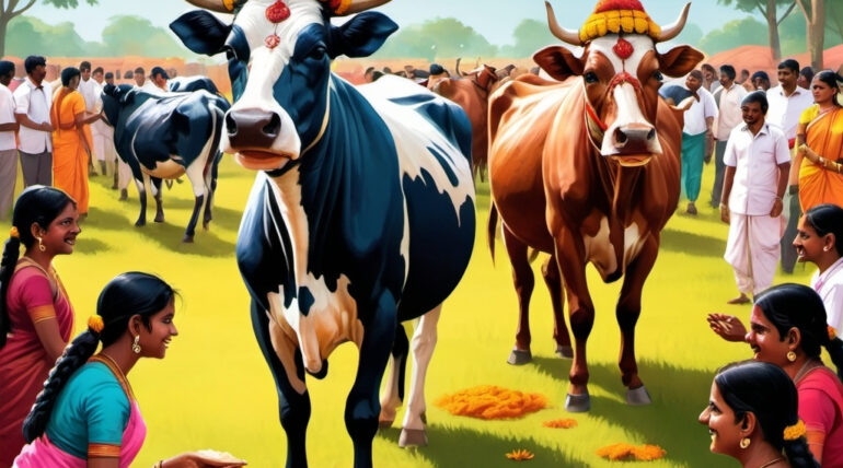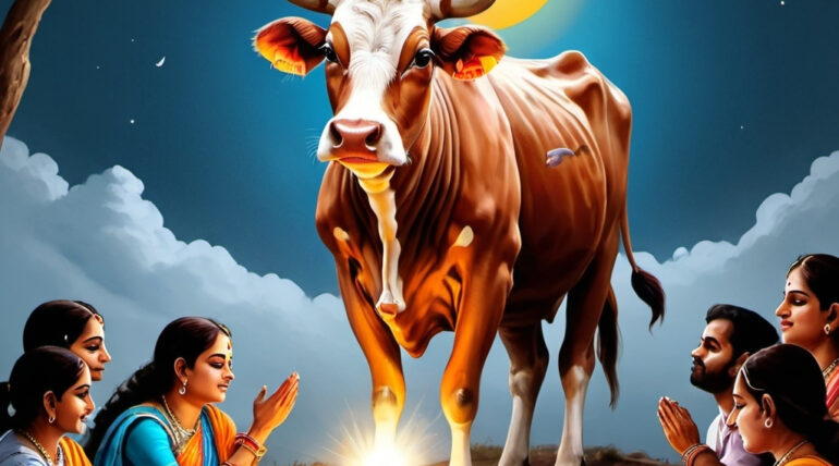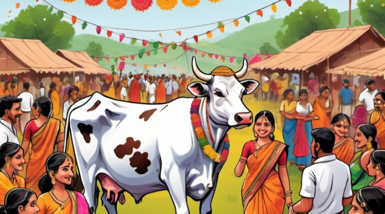Tale: In the heart of India, Madhya Pradesh has a long-standing tradition of Gau Seva, or the service to cows. In this region, cows are considered sacred beings that must be protected and cared for. Gau Shalas, or cow shelters, are established to provide sanctuary for these revered animals. The people of Madhya Pradesh believe that serving cows brings spiritual merit and prosperity.